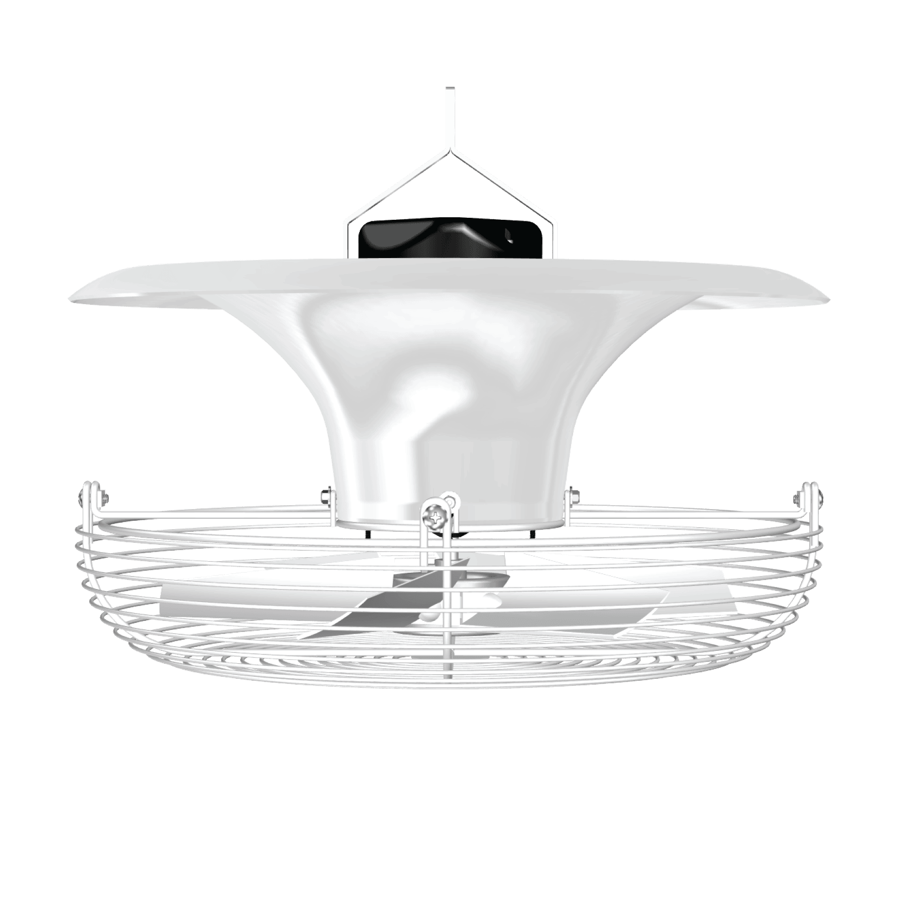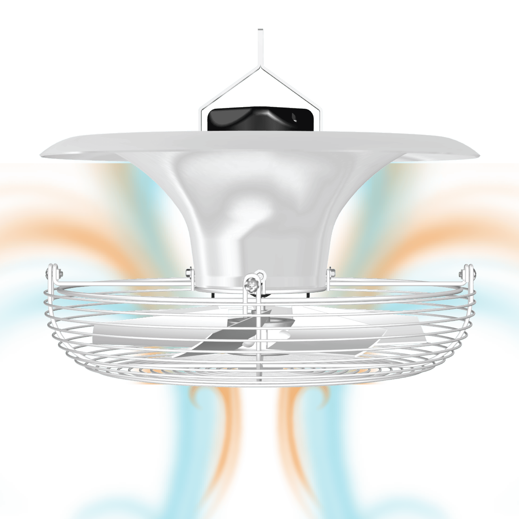 360° Vertical Airflow Pattern → breaks ceiling hot spots, ensures uniform canopy climate.