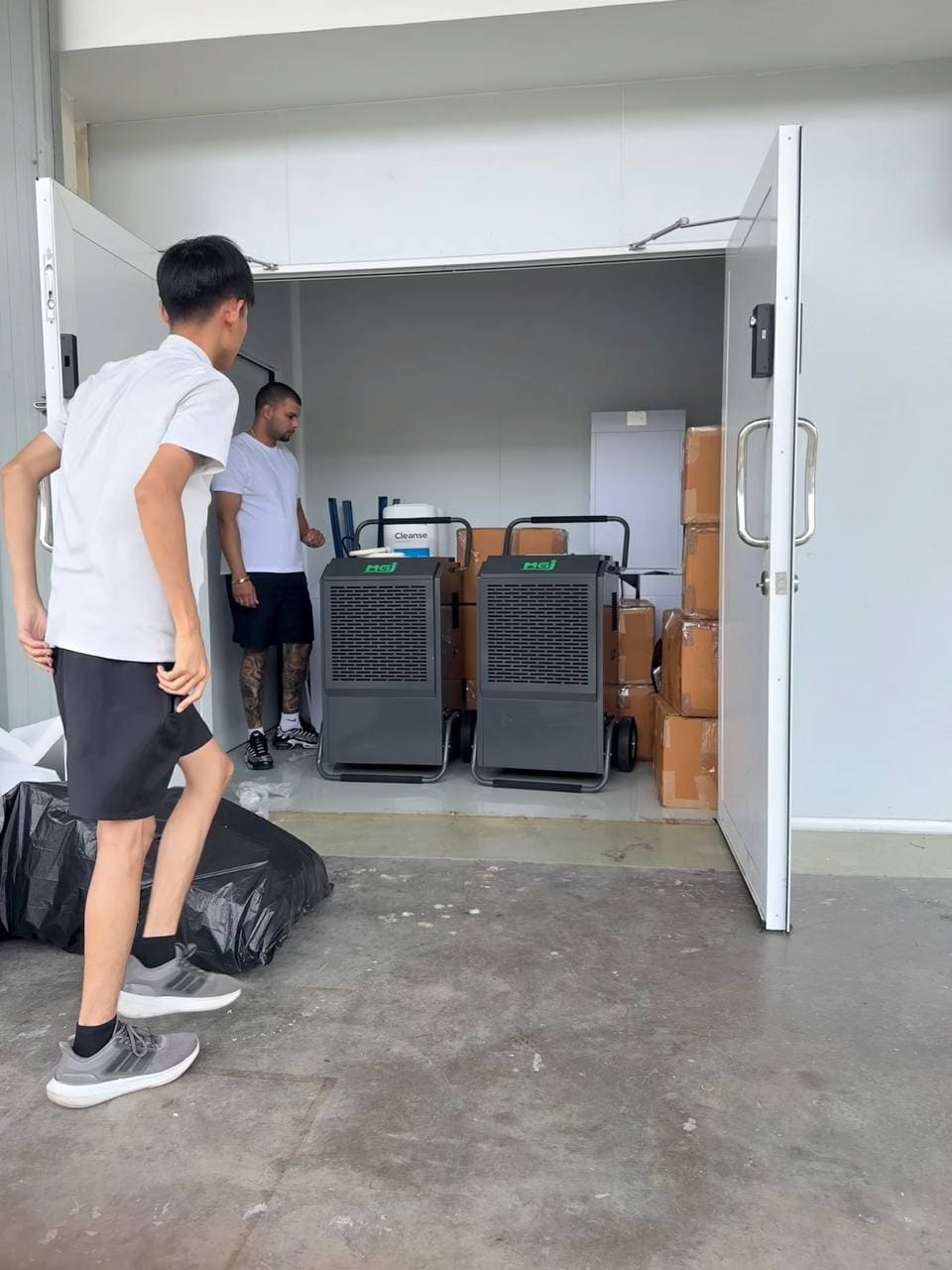 For maximum efficiency, the MGJ-158L Pro can be paired with suspended dehumidifiers. This dual-layer configuration targets moisture from both the upper and lower air zones, ensuring uniform humidity control across the entire grow room.